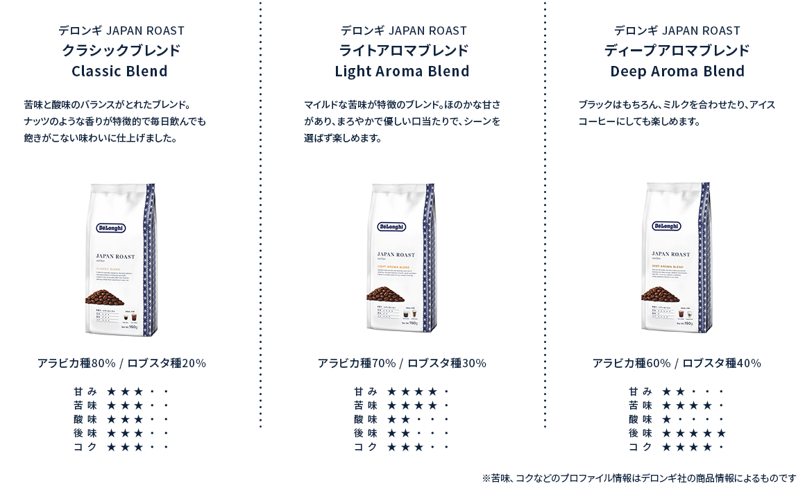 ※甘みや酸味などのプロファイル情報はデロンギ社の商品情報によるものです。